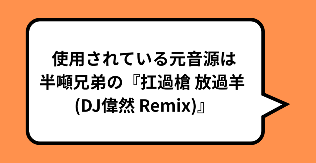 使用されている元音源は「半噸兄弟」の『扛過槍 放過羊 (DJ偉然 Remix)』