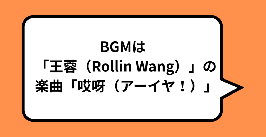 BGMは「王蓉(Rollin Wang)」の楽曲「哎呀(アーイヤ!)」
