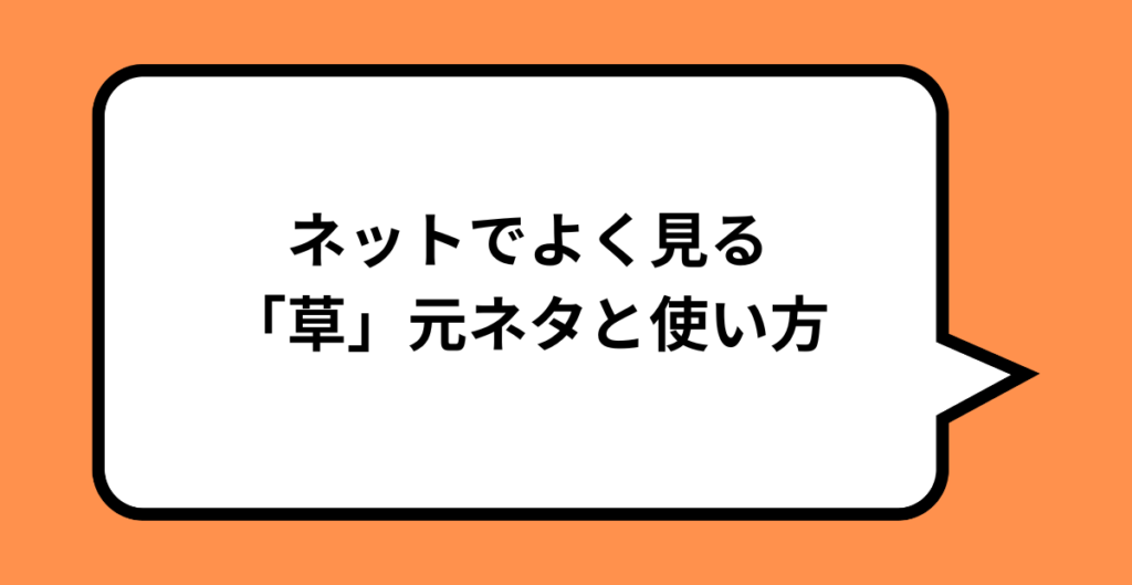 「草」は「笑った/面白い」を一言で伝えるネットスラングで、元ネタは“笑い(warai)”の頭文字「w」→それが連続した「www」が草むらに見える、という見立てです。