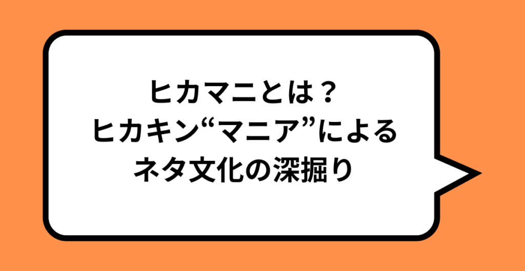 ヒカマニは、HIKAKINさんの語り口・効果音・編集記法まで観察し、ネタとして再利用・再文脈化するファン層を指します。