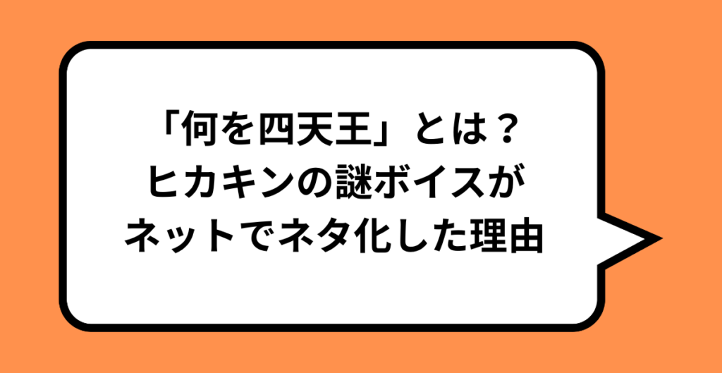 「何を四天王」は、HIKAKINさんの動画から切り抜かれた“聞き間違い・言い間違い系”の短い音声を寄せ集め、四天王になぞらえて呼んだネットスラングです。