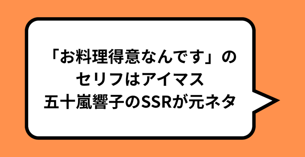 「お料理得意なんです」のセリフはアイマス五十嵐響子のSSRが元ネタ