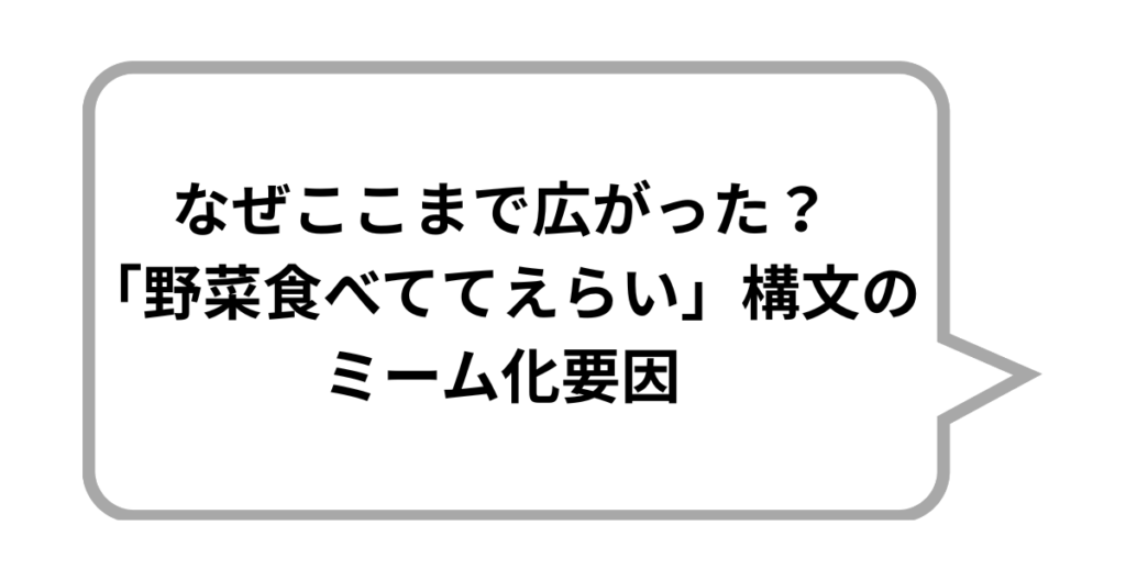 これらと同じく、「野菜食べててえらい」は、語感の面白さ+使い回しの柔軟さ+微妙なニュアンスのズレという、ミームに必要な条件を満たしていました。